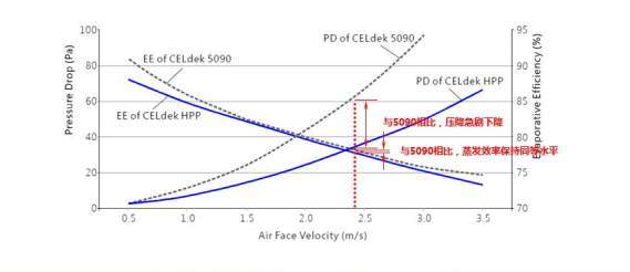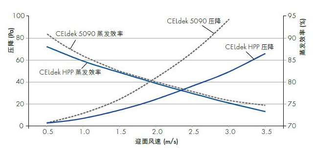 新研發(fā)的CELdek®HPP高性能濕簾主要針對迎面風速高、風量大的蒸發(fā)式冷風機而設計。對濕簾波紋進行了優(yōu)化設計的HPP高性能濕簾,在迎面風速高的情況下,能夠顯著降低壓力下降問題,實現(xiàn)卓越蒸發(fā)效率。