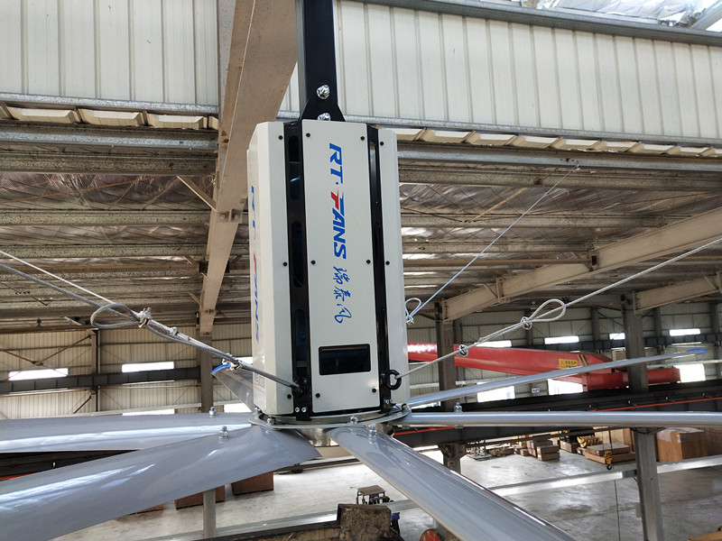 瑞泰風大型工業(yè)風扇采用7.3米超大直徑、低轉速,每臺風扇的有效近似覆蓋面積最大可達1800平米;持續(xù)輕柔的微風能加快人體表面汗液的蒸發(fā)速度從而產生涼爽的降溫效果,使人體感受到4-6℃的溫差效應,在無需安裝空調系統(tǒng)情況下達到最小投資、最佳舒適效果。風扇安裝在離地面5.5米以上的上部空間,不會影響任何地面工作區(qū)域正常工作進程,安全可靠,磨損少、免維護、使用壽命長。冬季采暖時,還可以低速運行,充分利用廠房建筑頂部的余熱,節(jié)能降耗。
